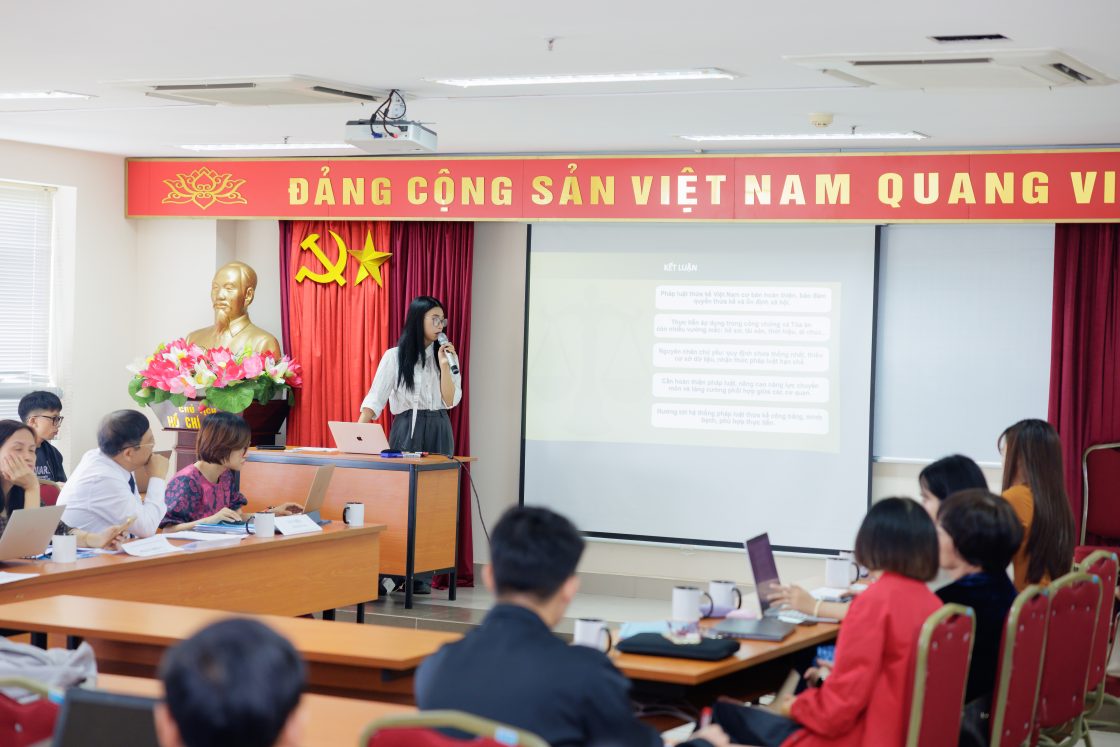 Hội đồng nghiệm thu gồm các nhà khoa học: GS.TS. Trần Phương Đạt – Trưởng Khoa Luật, Chủ tịch Hội đồng; TS. Nguyễn Văn Pha – Trưởng bộ môn Hiến pháp – Hành chính, Phản biện 1; TS. Đàm Bích Hiên – Trưởng bộ môn Luật kinh tế, Phản biện 2; ThS. Hà Tú Cầu – Quyền Trưởng phòng Quản lý Đào tạo, Nghiên cứu khoa học và Hợp tác quốc tế, Ủy viên; và ThS. Nguyễn Thị Phương – Chuyên viên Phòng QLĐT – NCKH – HTQT, Thư ký Hội đồng.
