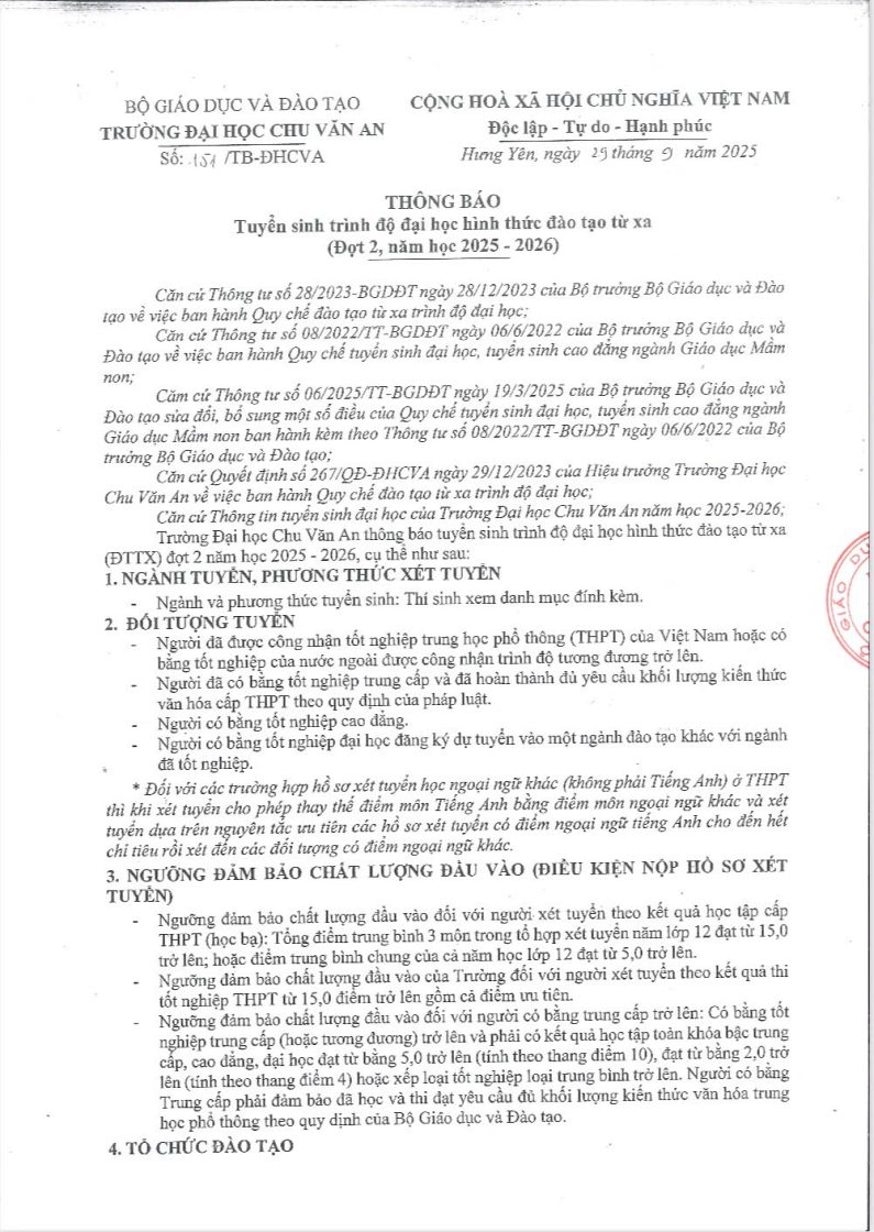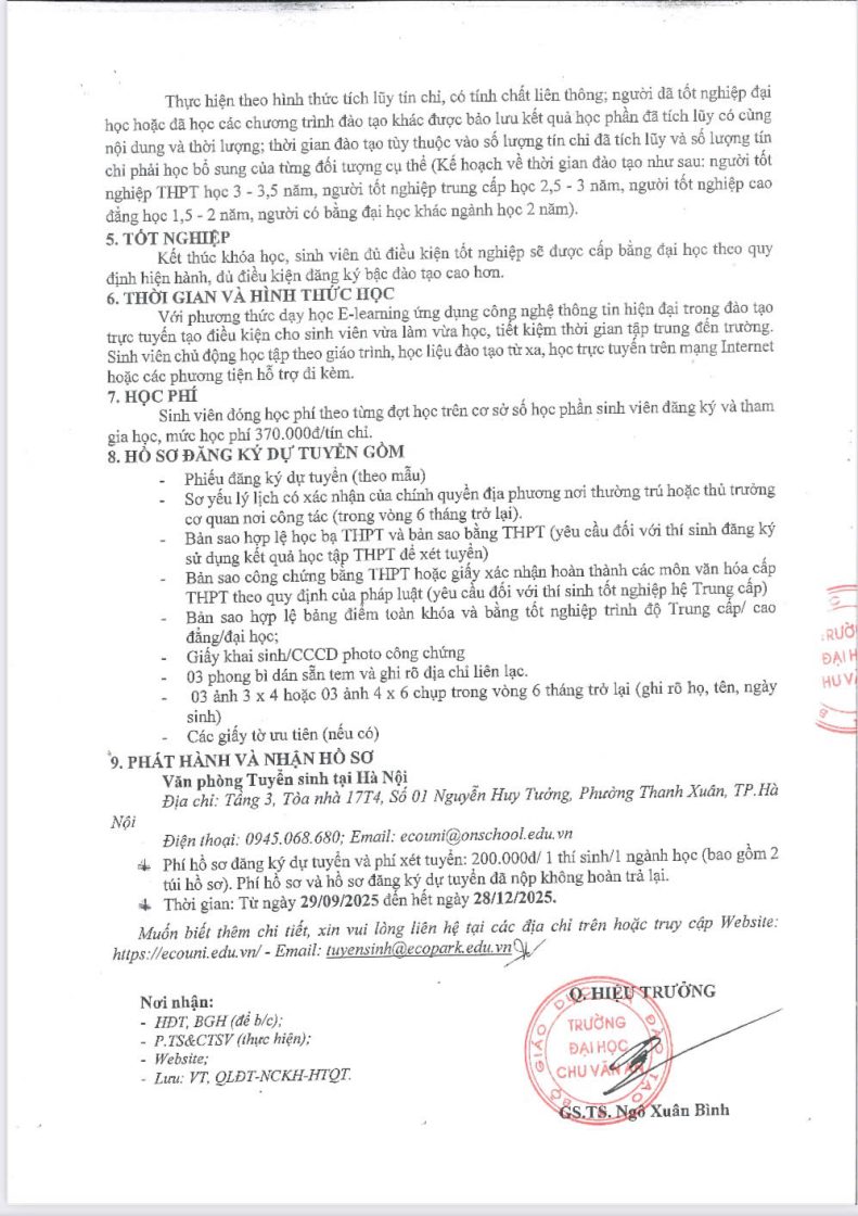 Đào tạo, Tin tức, Tuyển sinh, Tuyển sinh đại học, Tuyển sinh đại học từ xa THÔNG BÁO TUYỂN SINH TRÌNH ĐỘ ĐẠI HỌC HÌNH THỨC ĐÀO TẠO TỪ XA ( ĐỢT 2, NĂM HỌC 2025 – 2026) Posted on 11 Tháng mười một, 2025 by ecouni ecouni Đổi tên Trường Đại học Chu Văn An thành Trường Đại học Intracom